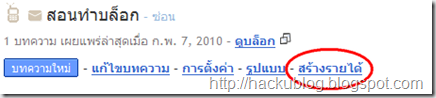 Log in เข้าไปที่ draft.blogger >> ไปที่แผงควบคุม >> คลิกที่แถบ สร้างรายได้